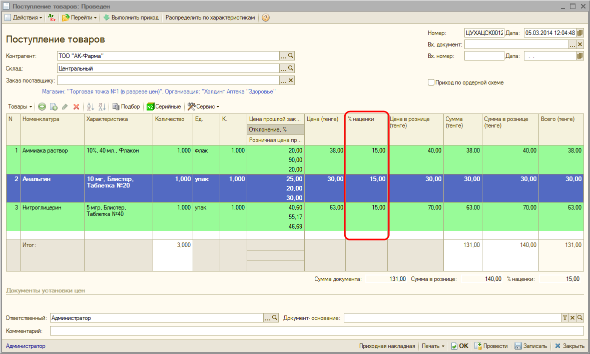 Таким образом, мы рассмотрели как ввести начальные остатки и определить ценовую политику в прикладном решении «1С:Аптека для Казахстана». В следующей статье речь пойдет об управлении маркетинговыми акциями в прикладном решении «1С:Аптека для Казахстана».