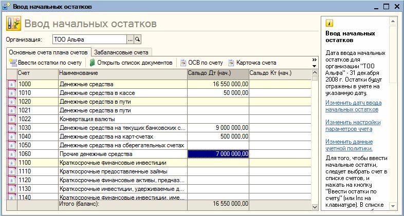 Введенные остатки сразу же становятся видны в форме помощника и отражаются в сумме баланса.