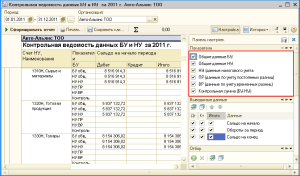 В блоке отчетов налогового учета разработан новый специализированный отчет для сверки данных бухгалтерского и налогового учета Контрольная ведомость данных бухгалтерского и налогового учета (меню Отчеты). С помощью данного отчета можно сверить показатели налогового и бухгалтерского учетов, а также сформировать отдельно информацию в разрезе определенного показателя — налоговый учет (НУ), временные разницы (ВР), постоянные разницы (ПР) или общие данные (Общие данные НУ, Общие данные БУ).