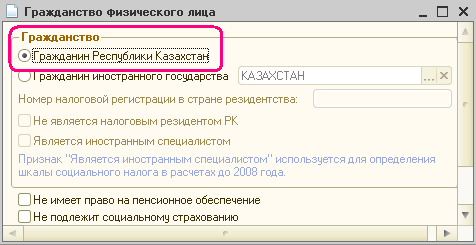 - Отчет формируется только по физическим лицам, являющимися гражданами РК. Для них в карточке физического лица должен быть установлен признак «Гражданин Республики Казахстан». Физические лица с незаполненными данными о гражданстве автоматически считаются гражданами и отображаются в форме 200.00.