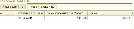 Также сформируются записи в регистр «Корректировка НДС», в котором отразятся сумма корректировки оборота и сумма НДС (Приложение 300.06 «Корректировка размера облагаемого и освобожденного оборотов и суммы налога на добавленную стоимость, отнесенного в зачет» к Декларации по НДС).