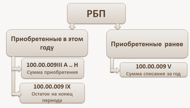 Обратите внимание, что все расходы на приобретение РБП, отражаются по кодам подстрок строки 100.00.009.III.