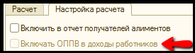 Таким образом, признак «Включать ОППВ в доходы работников» на закладке Настройка расчета в форме 2015 года снят и не доступен для установки пользователем.