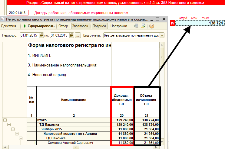 Ответ: В строке 200.01.013 отражается величина объекта обложения социальным налогом с учетом нижнего предела.