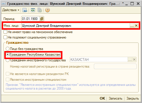 Для них в карточке физического лица должен быть установлен признак «Гражданин Республики Казахстан». Физические лица с незаполненными данными о гражданстве также автоматически считаются гражданами и отображаются в форме 200.00.