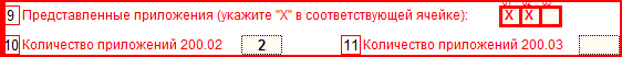 В форме декларации 200.00 на первой странице указывается количество приложений к декларации.
