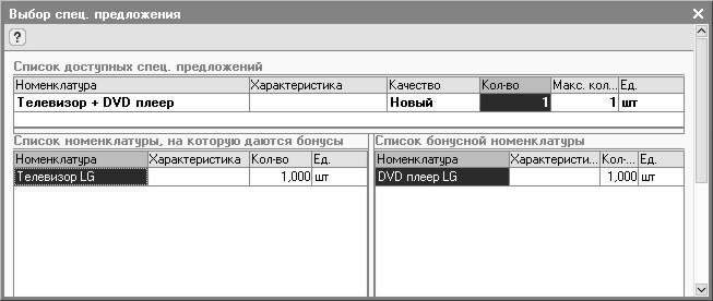 Таким образом, бонусным комплектом является – новая позиция в справочнике «Номенклатура» - «Телевизор + DVD плеер».