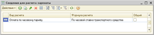 Допустим, что водителям в системе кадрового учета установлен плановый вид начисления «Оплата по часовому тарифу». В сведениях для расчета зарплаты, меню «Транспорт» — «Расчет зарплаты» — «Сведения для расчета зарплаты» зададим формулу расчета:
