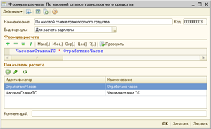 В примере выбрана формула «По часовой ставке транспортного средства». Эта формула добавляется при первом запуске конфигурации: