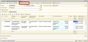 Выполним расчет начислений водителю в документе «Расчет зарплаты водителей». С помощью кнопки «Автозаполнение», заполним табличную часть «Начисления»: