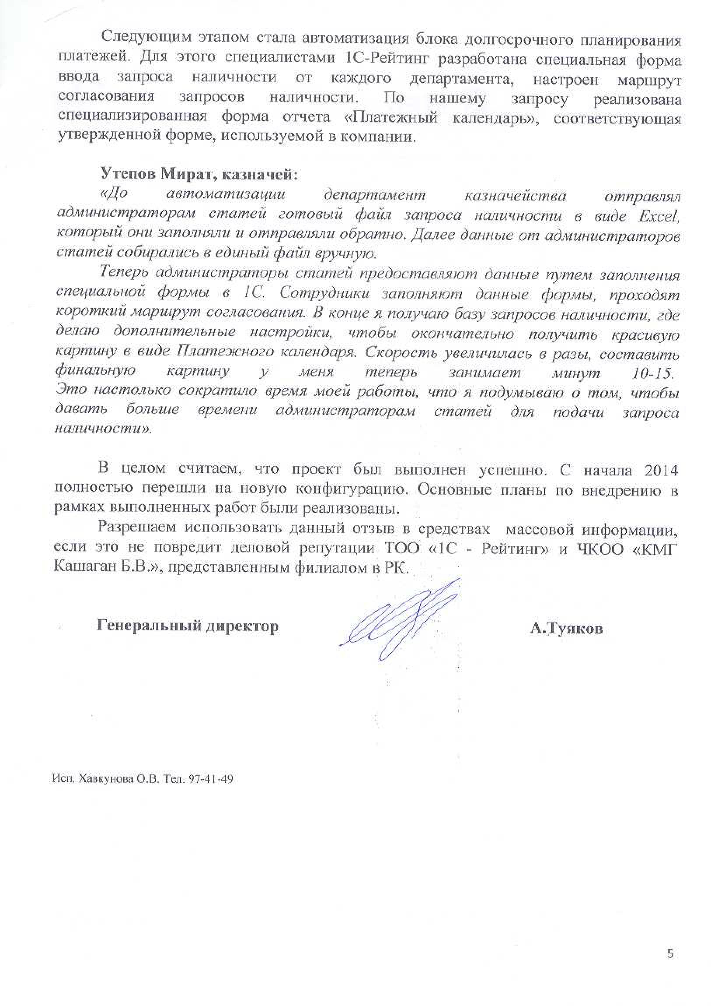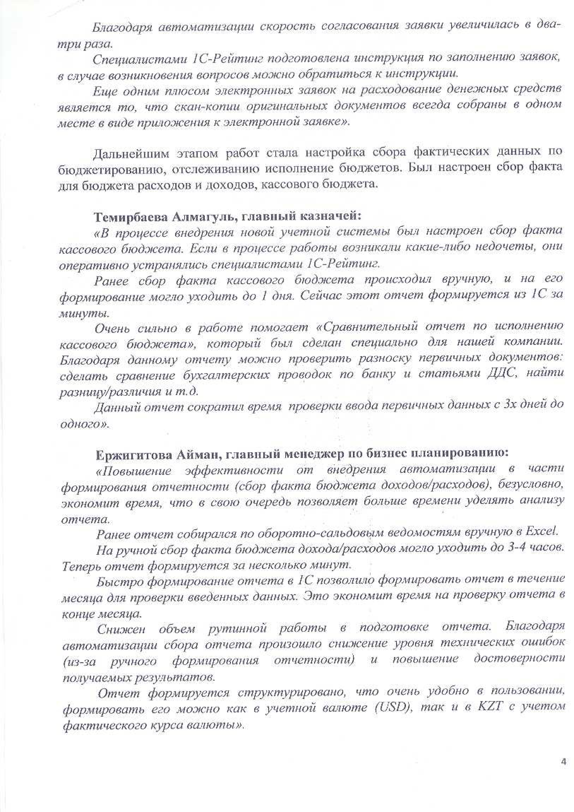 «Включение департамента казначейства в единую информационную базу позволило получать оперативную информацию и сократить время на формирование платежных поручений.