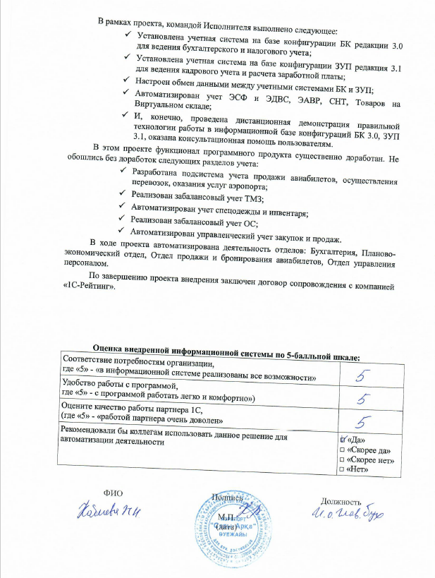 - Ежемесячно производятся работы по обновлению платформы и типовых конфигураций, диагностика состояния информационной базы, создание архивных копий