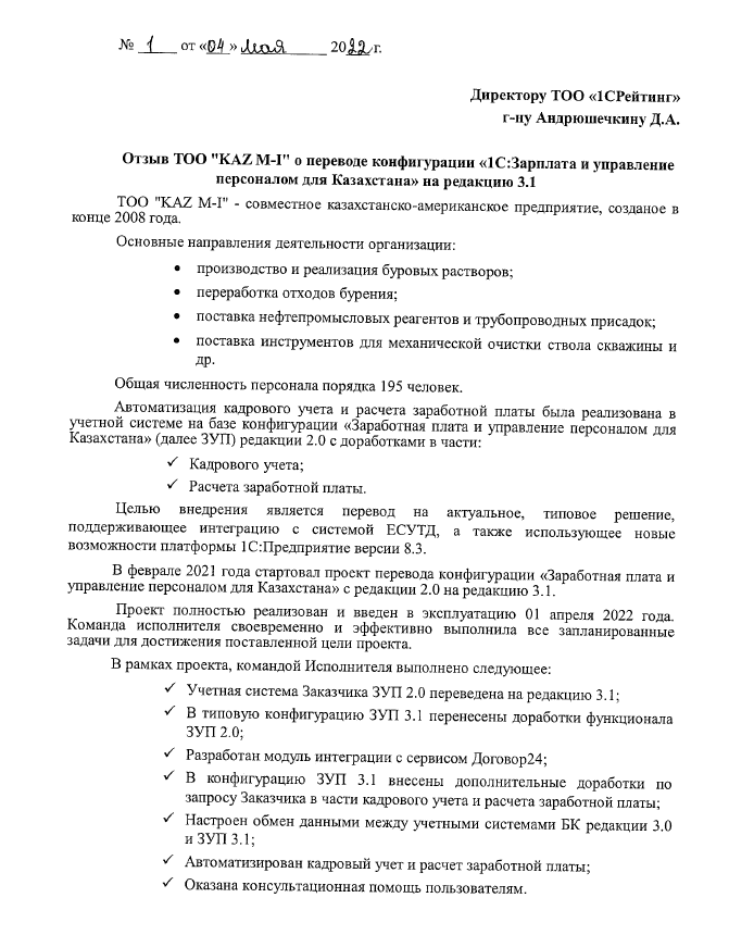 В феврале 2021 года стартовал проект перевода конфигурации «Заработная плата и управление персоналом для Казахстана» с редакции 2.0 на редакцию 3.1.
