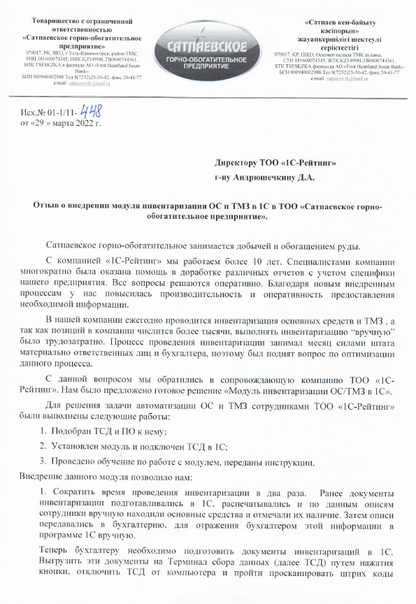 Сократились затраты на инвентаризацию ОС/ТМЗ. На текущий момент мы имеем современную учетную систему, в которой автоматизированы все разделы бухгалтерского и налогового учета.