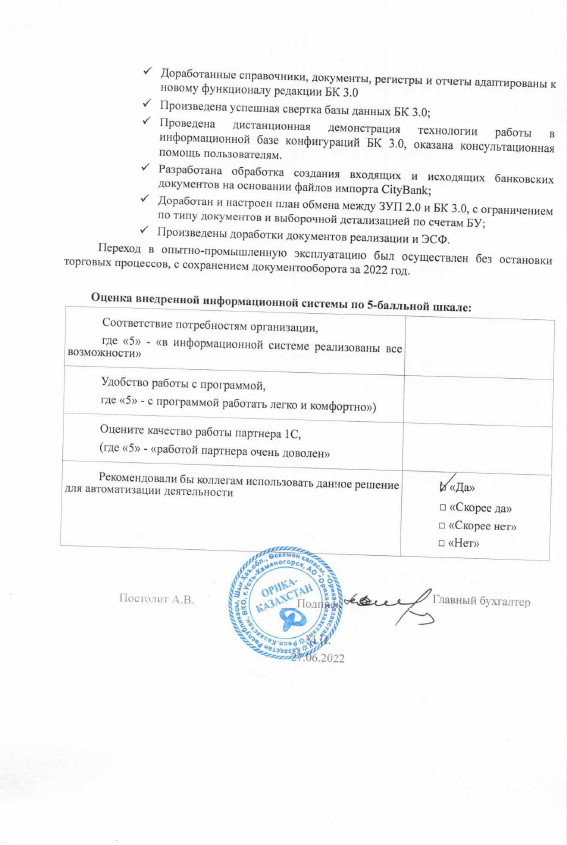 Переход в опытно-промышленную эксплуатацию был осуществлен без остановки торговых процессов, с сохранением документооборота за текущий год.