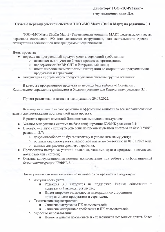 Тип проекта: Перевод учетной системы на типовое решение «1С-Рейтинг: Комплексное управление финансами и бюджетирование для Казахстана» ред. 3.1