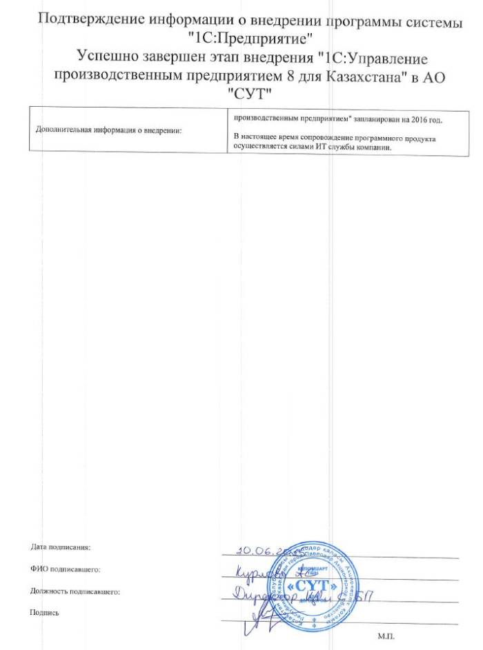 | Внедренное типовое решение: | 1С:Управление производственным предприятием для Казахстана |