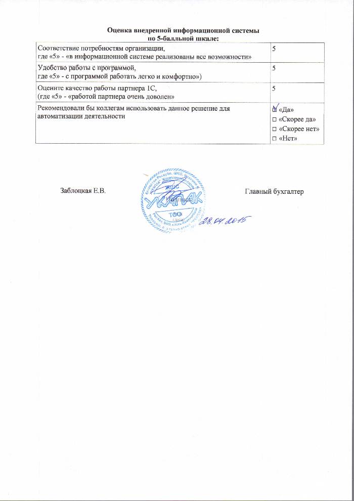 - Ежемесячно производятся работы по обновлению платформы и типовых конфигураций, диагностика состояния информационной базы, создание архивных копий