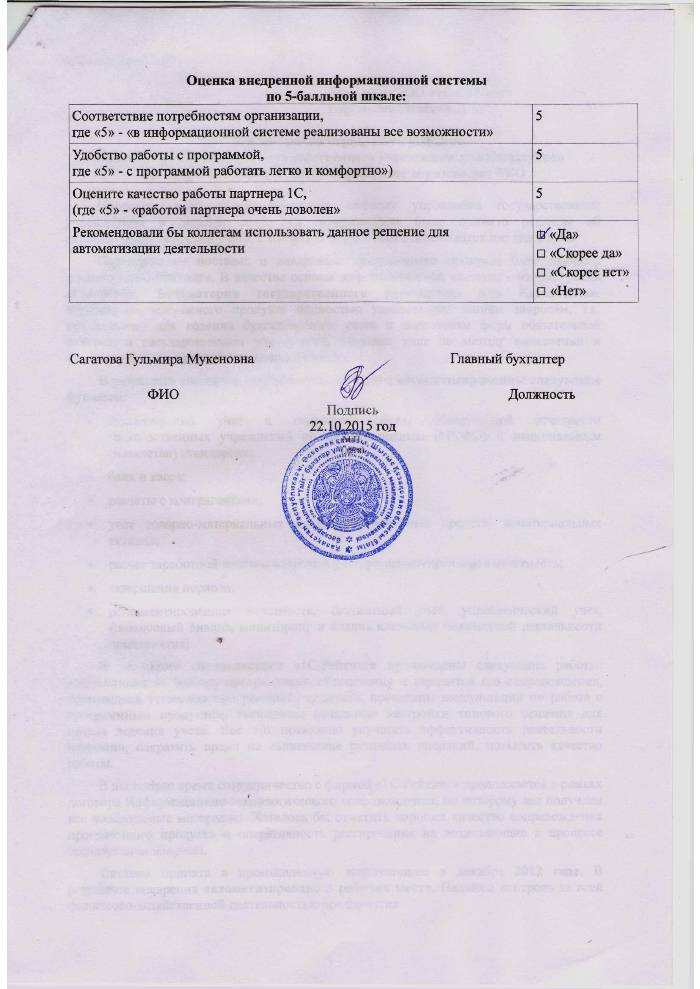 - Ежемесячно производятся работы по обновлению платформы и типовых конфигураций, диагностика состояния информационной базы, создание архивных копий