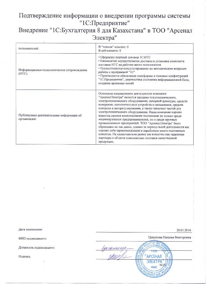 | Внедренное типовое решение: | 1С:Бухгалтерия 8 для Казахстана |