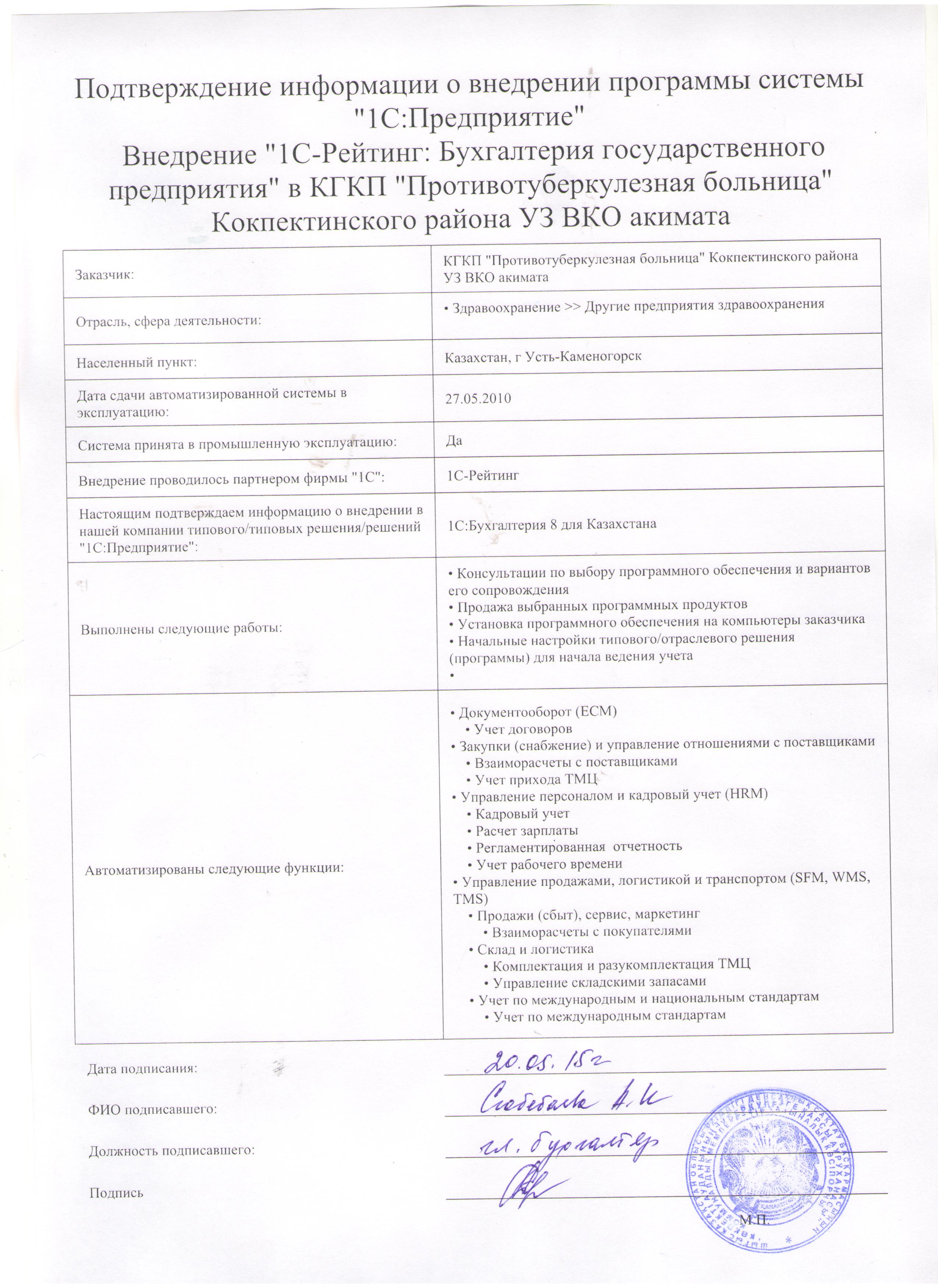 | Внедренное отраслевое решение: | 1С-Рейтинг: Бухгалтерия государственного предприятия |