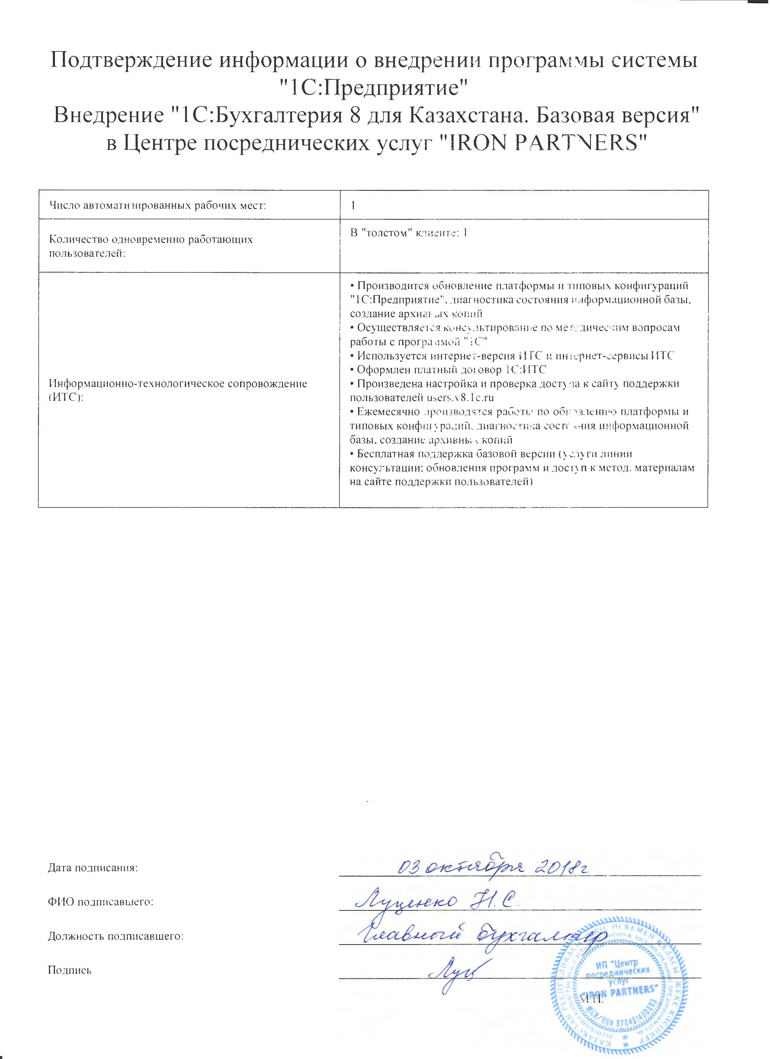 | Внедренное типовое решение: | 1С:Бухгалтерия для Казахстана. Базовая версия |