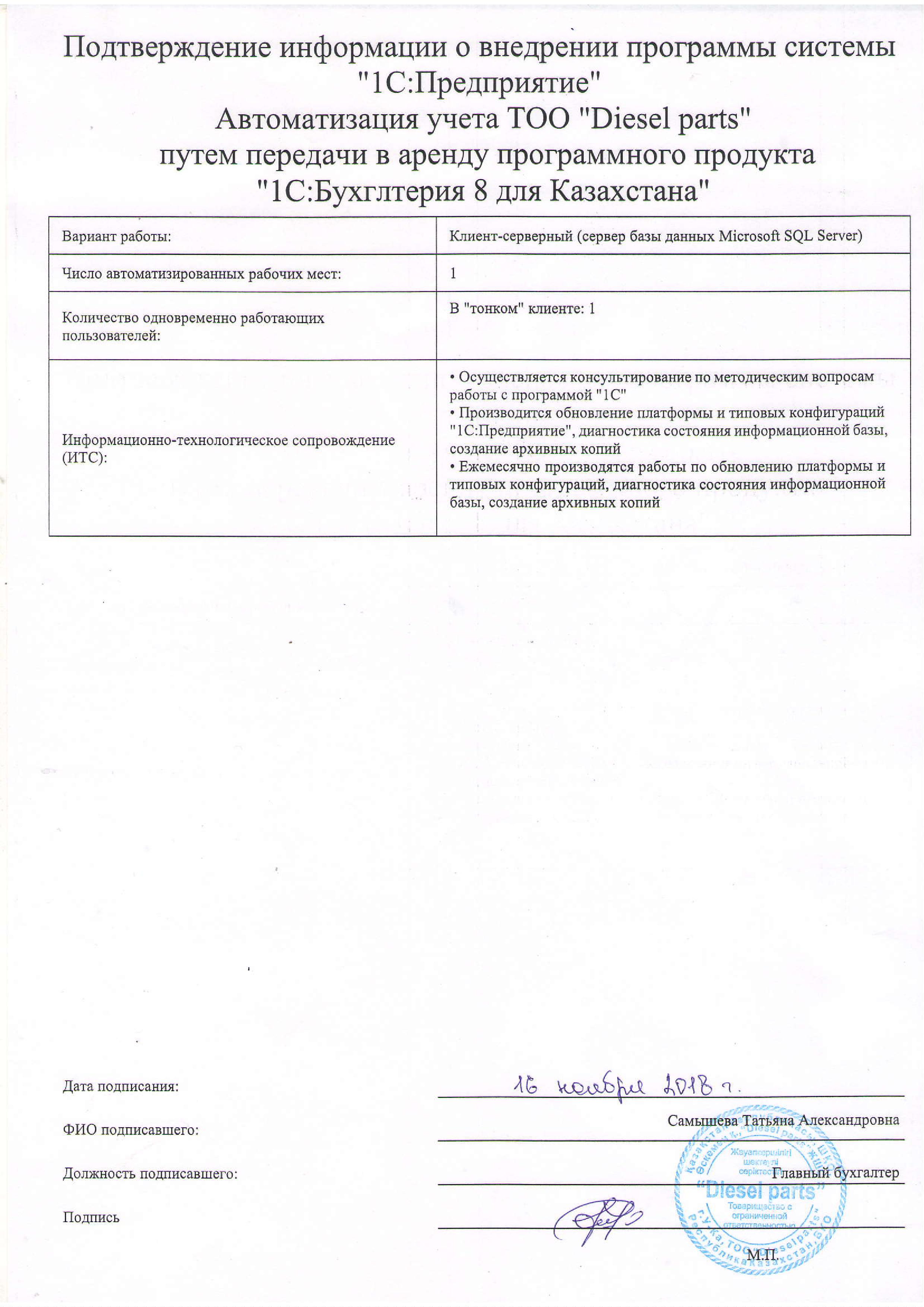 | Арендованное типовое решение: | 1С:Бухгалтерия для Казахстана |