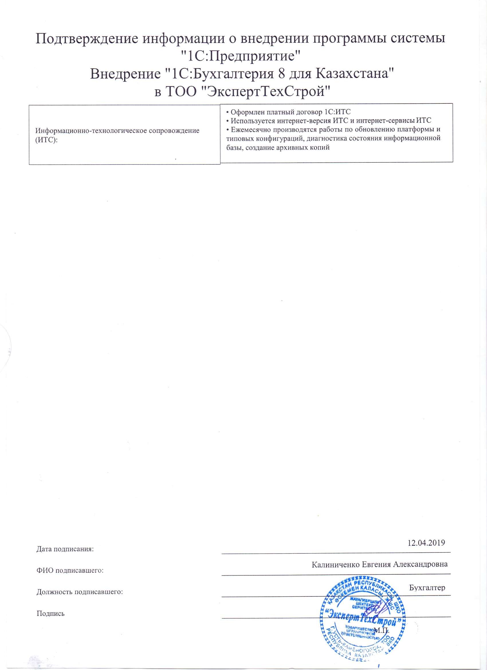 - Оформлен платный договор 1С:ИТС