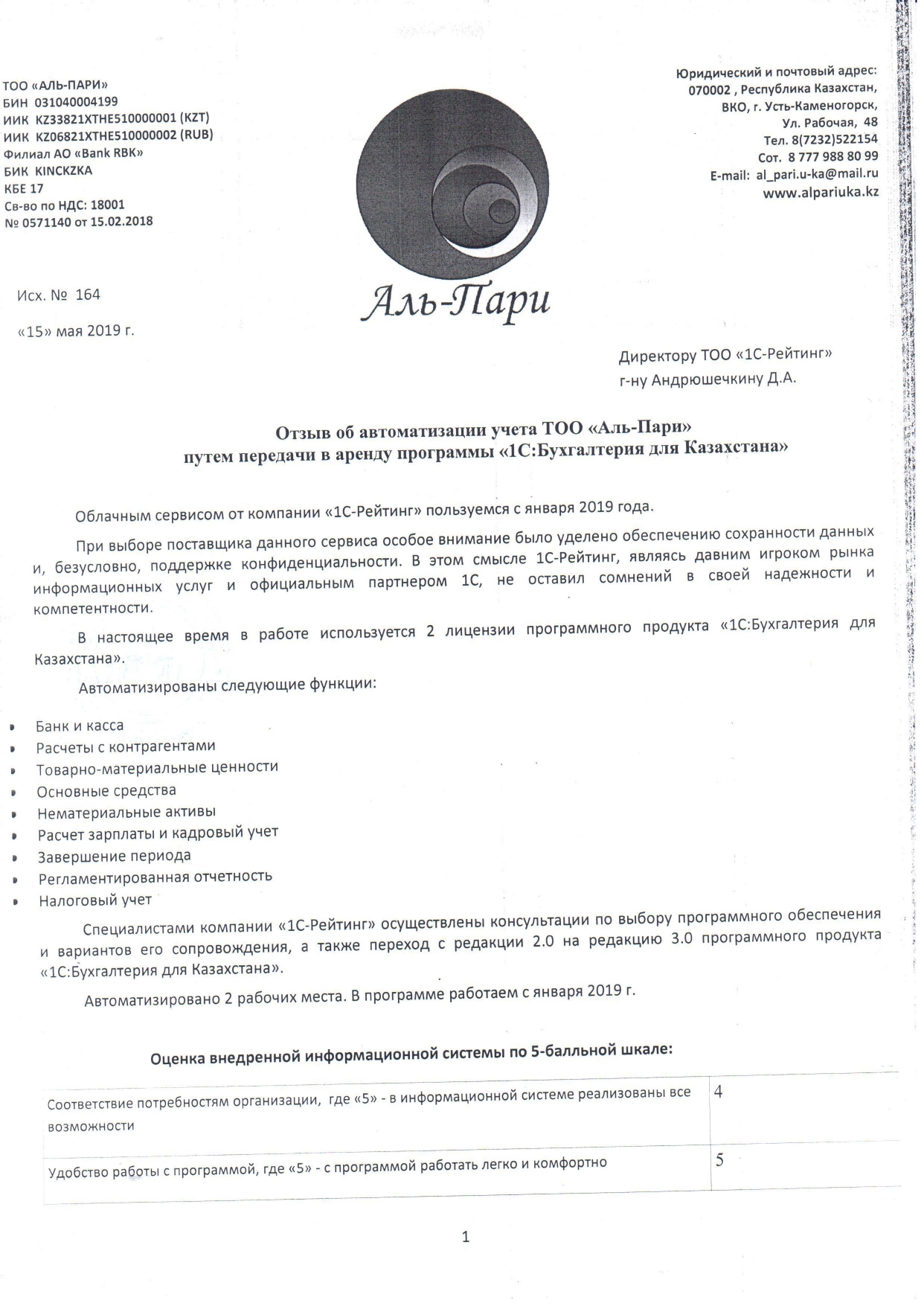 | Арендованное типовое решение: | 1С:Бухгалтерия для Казахстана |