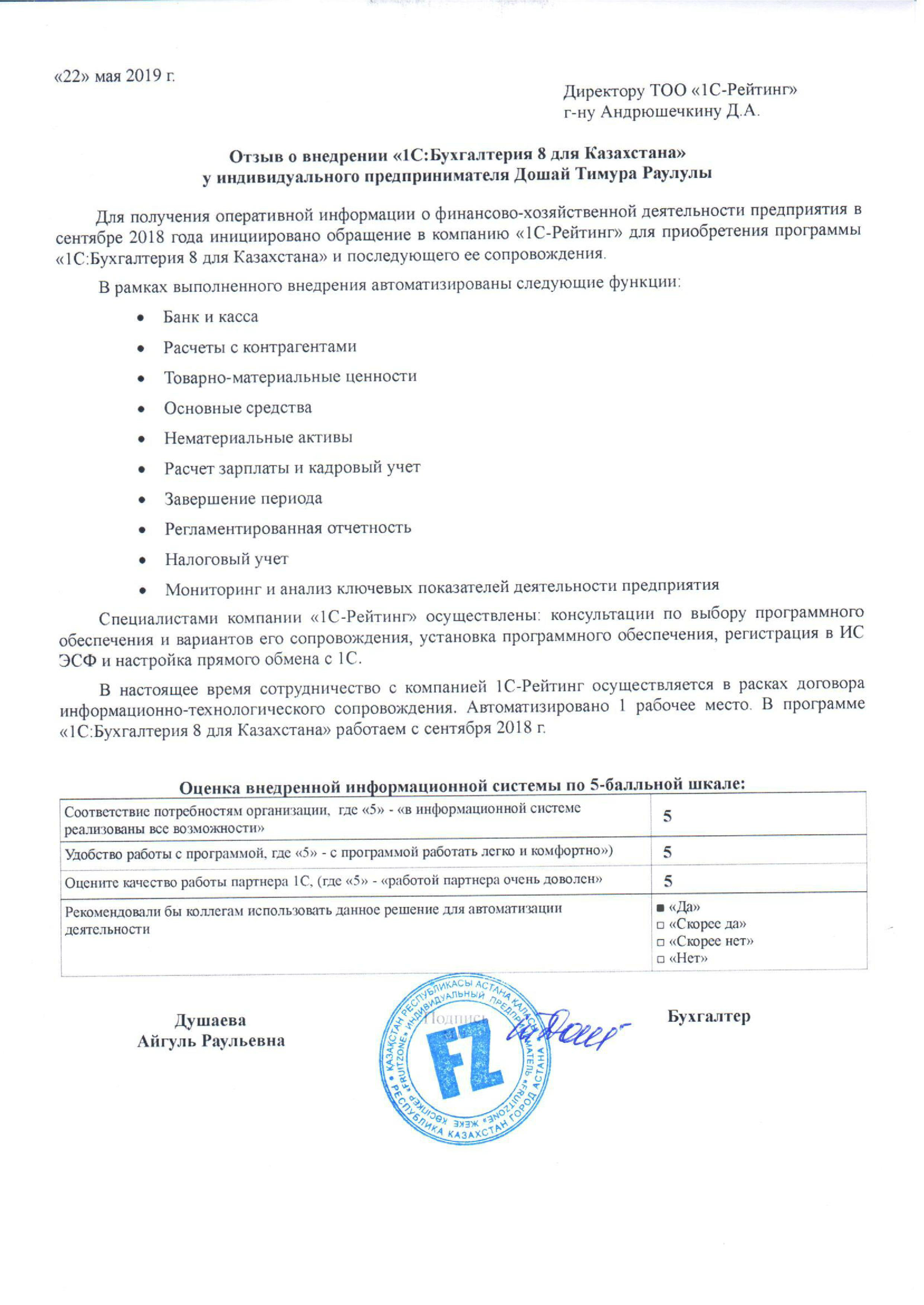 | Внедренное типовое решение: | 1С:Бухгалтерия 8 для Казахстана |