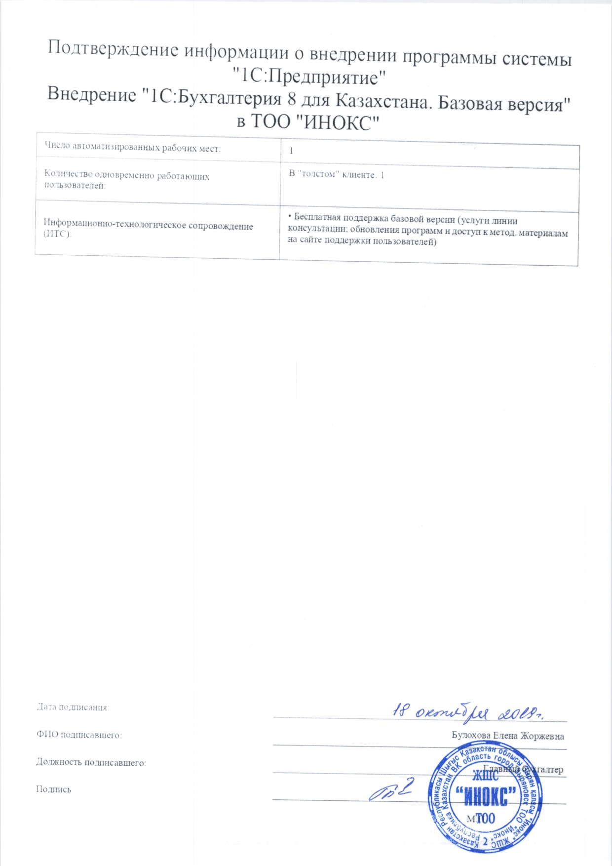 | Внедренное типовое решение: | 1С:Бухгалтерия для Казахстана. Базовая версия |