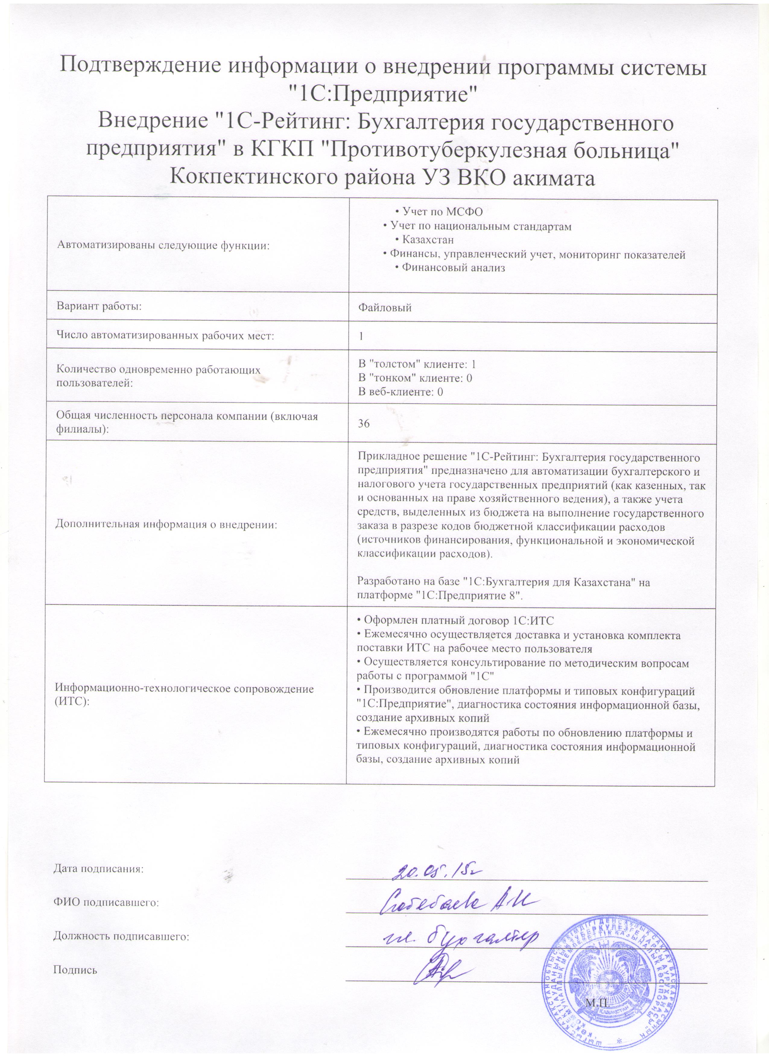 | Внедренное отраслевое решение: | 1С-Рейтинг: Бухгалтерия государственного предприятия |