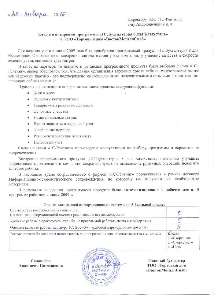 | Внедренное типовое решение: | 1С:Бухгалтерия 8 для Казахстана |