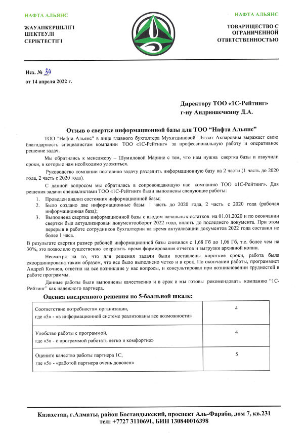 В результате свертки размер рабочей информационной базы снизился с 1,68 Гб до 1,06 Гб, т.е. более чем на 30%, это позволило существенно сократить время формирования отчетов и выгрузки архивной копии. Несмотря на то, что для решения задачи были поставлены короткие сроки, работа была скоординирована таким образом, что все было выполнено четко и в срок. По окончании работы, специалист «1С-Рейтинг», ответил на все возникшие у нас вопросы, и консультировал при возникновении трудностей в работе программы.
