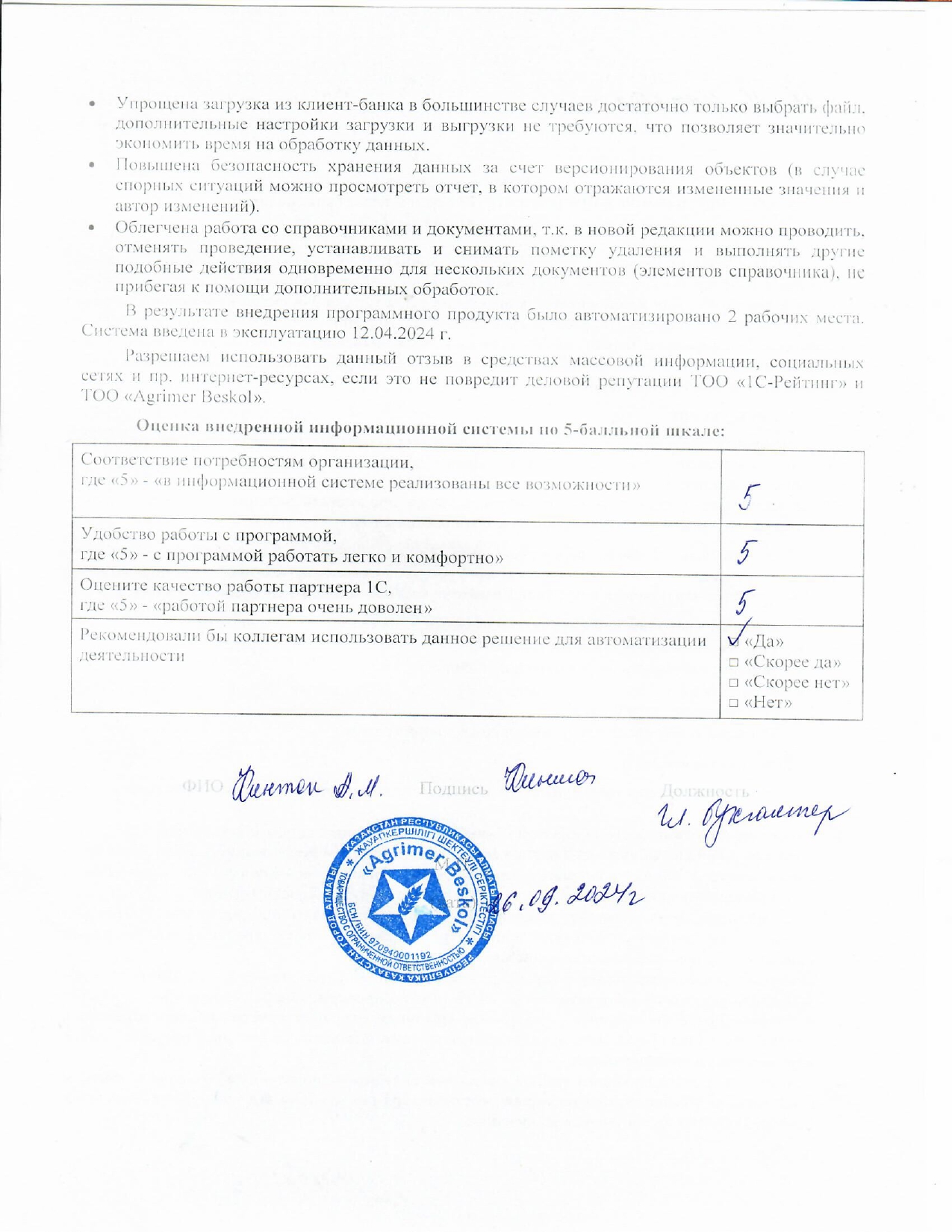 С данной задачей обратились в компанию ТОО «1С-Рейтинг». За счет новой архитектуры прикладного решения в новой редакции конфигурации автоматизирован ряд операций, которые невозможно автоматизировать в прежней редакции. Были выполнены следующие работы: