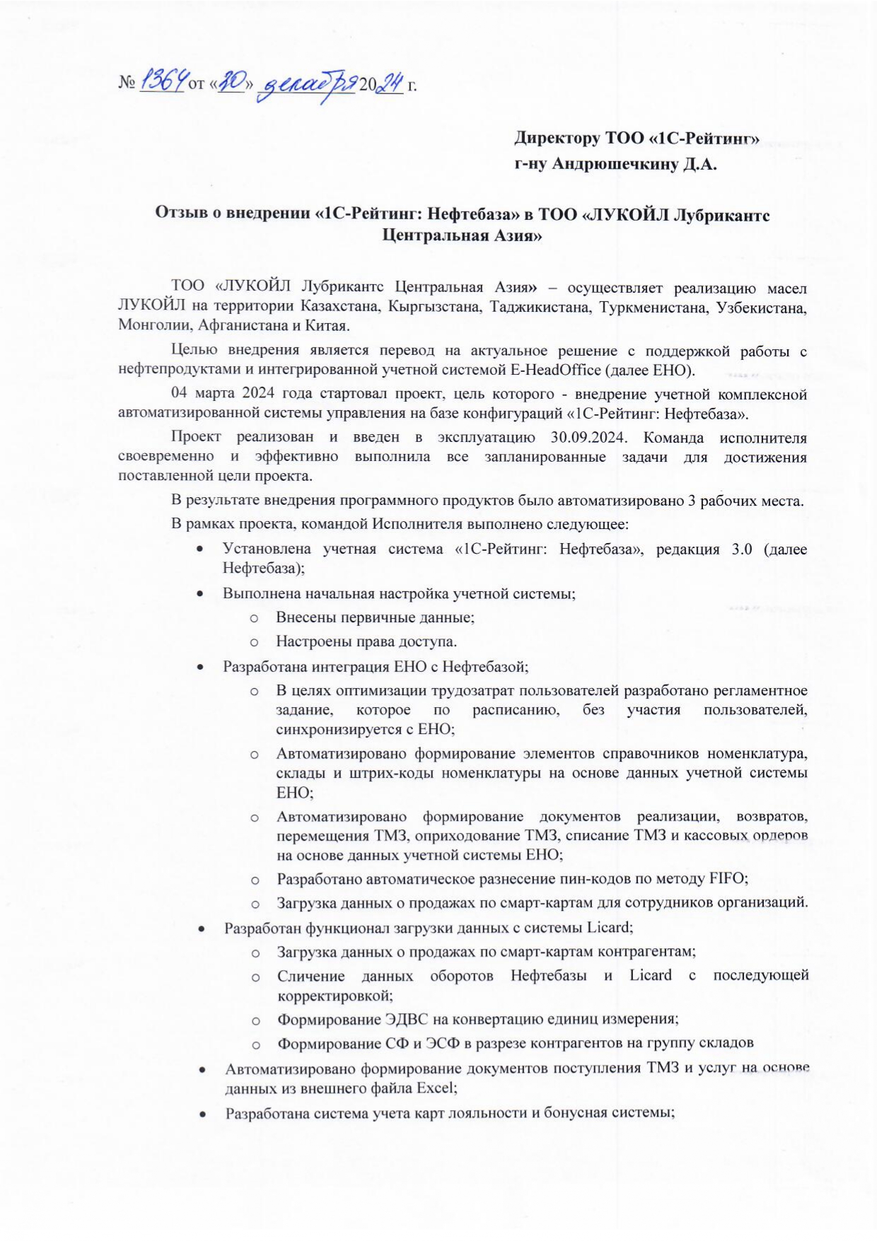 В марте 2024 года стартовал проект внедрения учетной комплексной автоматизированной системы управления на базе конфигураций «1С-Рейтинг: Нефтебаза».