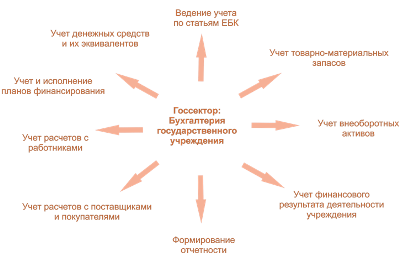 «Госсектор: Бухгалтерия государственного учреждения для Казахстана» обеспечивает автоматизацию бухгалтерского учета по следующим разделам: