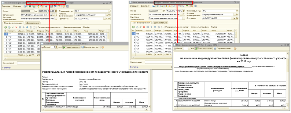 «Госсектор: Бухгалтерия государственного учреждения для Казахстана» предоставляет возможность регистрировать индивидуальные планы финансирования государственных учреждений по обязательствам и по платежам, планы финансирования администраторов бюджетных программ, а также вести учет вносимых в планы финансирования изменений.