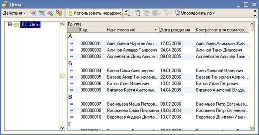 Сведения о детях, которым предоставляет услуги детское учреждение, хранятся в справочнике Дети.