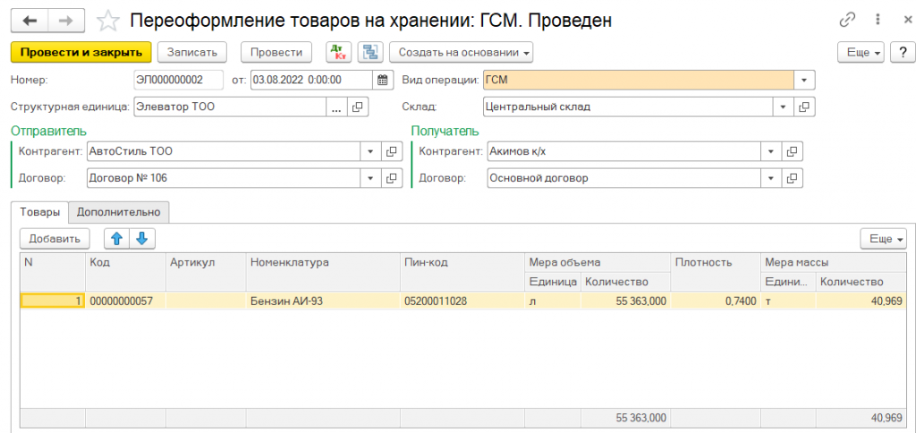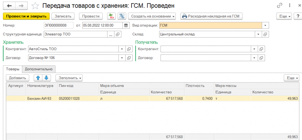 Для отражения операции отпуска горюче-смазочных материалов и угля с ответственного хранения по окончанию срока хранения, используется документ Передача товаров с хранения.