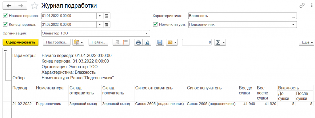 В отчете предусмотрена возможность отражения данных по влажности продукции.
